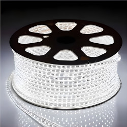 LED strip suitable for indoor or outdoor use, with direct connection to 220V. It does not need transformers or external rectifiers for its operation, for the electrical connection it is enough with a small adapter plug kit that allows to connect the strip in any socket in a matter of seconds.
