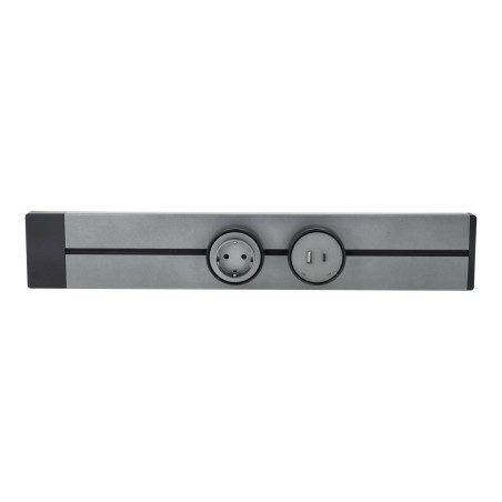 Rail for surface mounting, metallic grey colour. Allows easy coupling and uncoupling of sockets of all types, as well as moving the sockets along the entire length of the rail. This makes it ideal for locations where the number and/or type of sockets available needs to be varied from time to time.