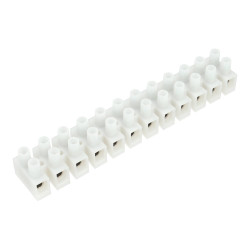 Terminal block with screw connection terminals, made of flexible polyamide. It consists of 12 connectors suitable for rigid/flexible cable with a cross-section from 4 to 10mm².