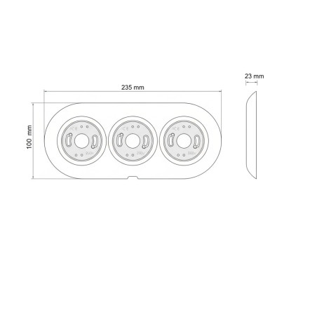 Triple surface-mounted frame made of porcelain available in black and white with dimensions of 235 x 100 x 23 mm.