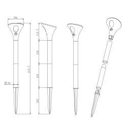 The body of the beacon consists of a spike for floor mounting, the head and two intermediate bars. These bars allow the light point to be installed at different heights.