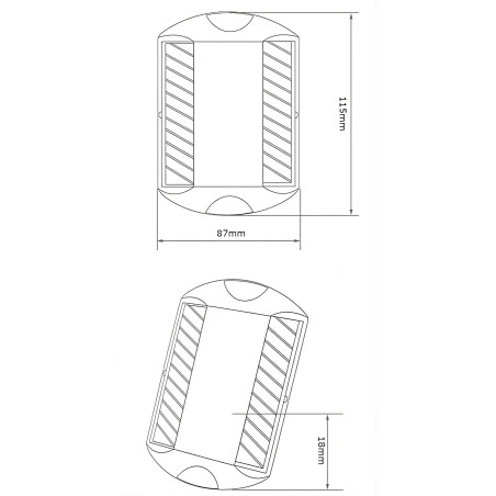 Road beacon (also called cat's eye) with reflective strips on both sides and a phosphorescent strip on the top.