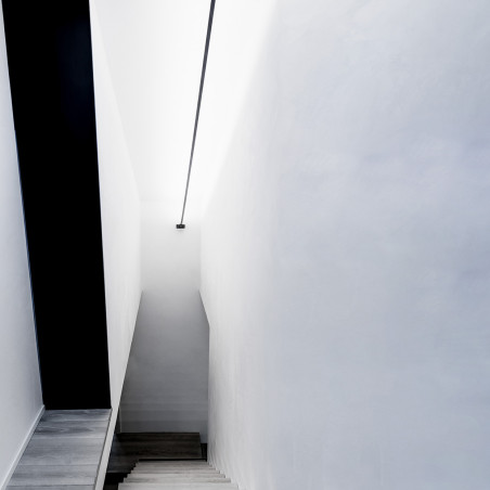 It can be used with our rectangular profile 66x35x2000mm, simply screw the two trims to the ceiling, pass the steel cable with its stopper, and screw the cable pin to the profile. This contains a mechanism that allows height adjustment.