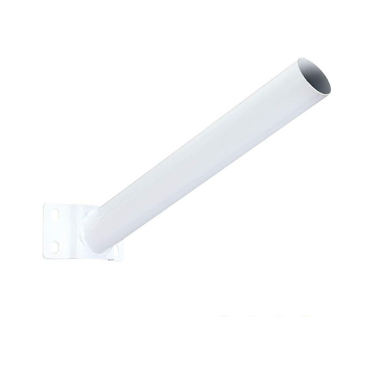 Metallic bracket for installing street lamps on the wall, finished in a white colour.