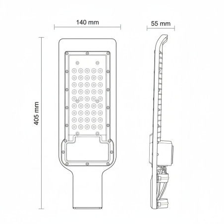 50W street light LED light fitting, 50 LEDs x 1W, directional lighting, cool white light, 5000 lumens.