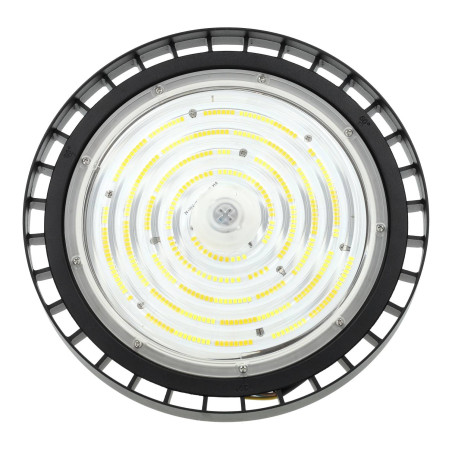 Campana LED de alta eficiencia, diseñada para entornos exigentes como fábricas, almacenes, talleres, parkings y supermercados. Con un rendimiento excepcional de 200 lúmenes por vatio y un ángulo de apertura ajustable, esta luminaria ofrece una iluminación brillante, uniforme y de alta eficiencia. Su alta eficiencia energética hace que se logre el doble de luminosidad para la misma potencia en comparación con las campanas LED convencionales o, lo que es lo mismo, se obtiene la misma luminosidad con la mitad de consumo.