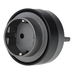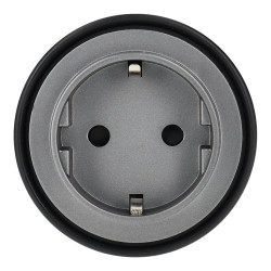 Toma de enchufe tipo F (Schuko) para instalación en carril lineal, con acabado en color gris.