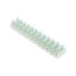 Regleta con clemas de conexión a tornillo, fabricada en poliamida flexible. Consta de 12 conectores aptos para cable rígido/flexible con sección desde 2.5 hasta 6mm²