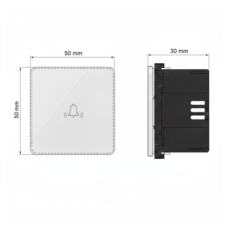 Interrupteur tactile pour les sonnettes, disponible en blanc ou en noir.