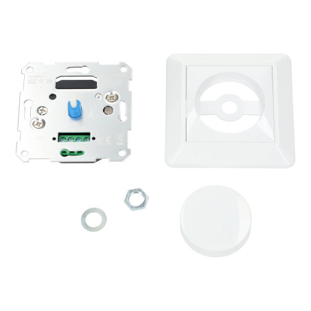 Peut être installé comme point de commande unique ou associé à un interrupteur va-et-vient mécanique, permettant la mise en marche et l'arrêt depuis deux points. Il est compatible avec les boîtiers d'encastrement universels. Pour effectuer le câblage, il suffit de retirer la molette pour accéder aux borniers de connexion. Pour plus de détails sur l'installation, consulter le manuel d'instructions disponible dans l'onglet « manuels et téléchargements ».