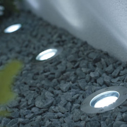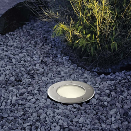 Projecteur LED rond, encastré dans le sol.