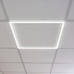Cadre LED 60x60 cm adapté à l'installation dans les plafonds suspendus, permettant de conserver les plaques de plâtre.