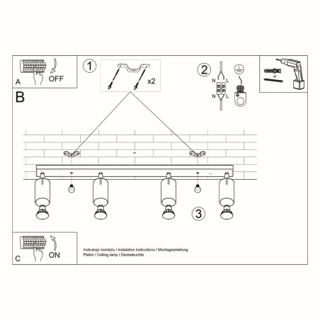 A luminária de teto com 4 lâmpadas está disponível em 4 versões de cores clássicas: branco, preto, cinza e cromado. As cores universais se encaixam perfeitamente em interiores de qualquer estilo: desde um loft rústico até um ambiente rústico aconchegante.