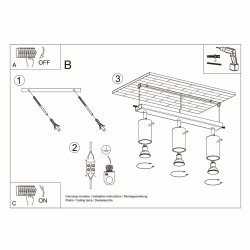 Ilumine o seu interior com um candeeiro de teto com 3 lâmpadas, que pode instalar em qualquer divisão. Os braços ajustáveis proporcionam grande liberdade na criação da atmosfera do interior - do crepúsculo quente à luz plena, dependendo da posição dos abajures. A luminária de teto foi projetada pensando na facilidade de uso - veja como ela cuidará do seu conforto.