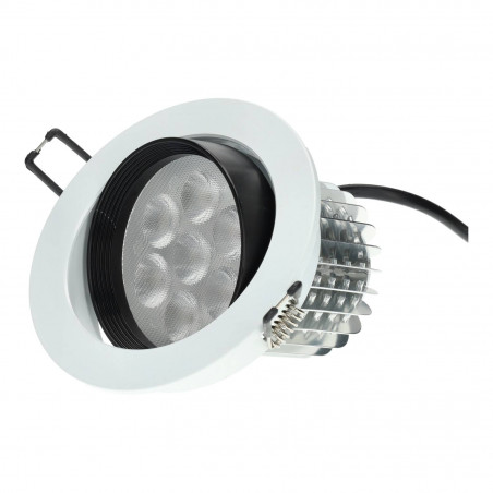 Painel rodada Led Downlight 7W com moldura branca. Rotatórias doca, com luz quente, a 700 lumens.