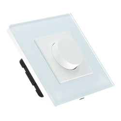 Dispositivo para regular a potência de uma instalação LED de 220V com uma carga máxima de 80W. Ao rodar a roda, a intensidade luminosa dos LEDs pode ser regulada desde o seu valor máximo até ser desligada. Ideal para a regulação de fitas LED de 220V, lâmpadas LED reguláveis, downlights (com driver regulável), etc.